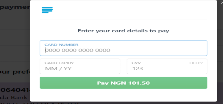 Step 6:Fill in your card details, you will be debited the sum of ₦100 to test